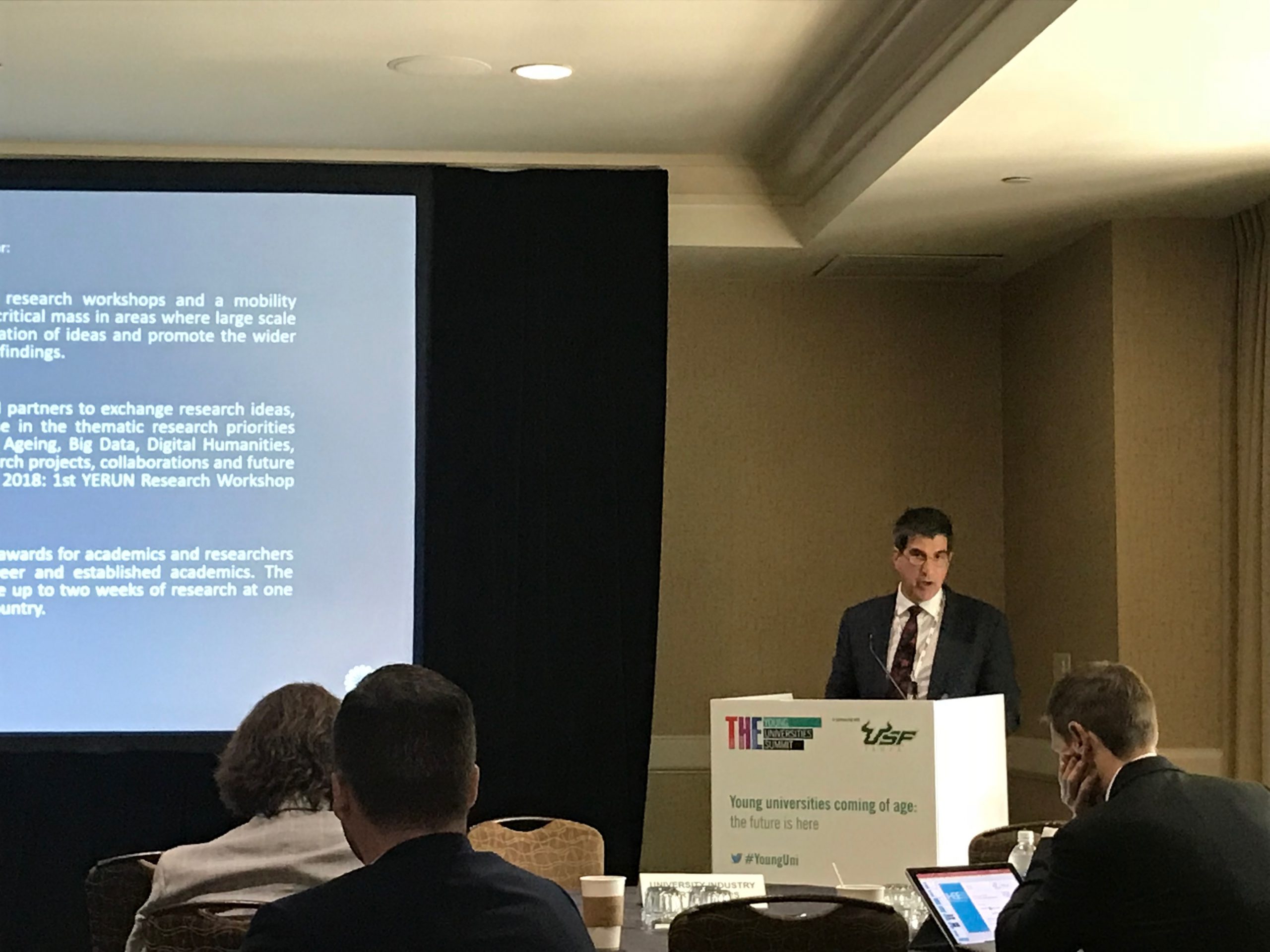 YERUN is pleased to be present at THE Summit for Young Universitieskindly hosted by the University of South Florida, in Tampa. YERUN President Prof Juan Romo (UC3M) and YERUN members Prof Anthony Forster (University of Essex) and Prof Brian MacCraith (Dublin City University) are participating in various sessions of the programme.